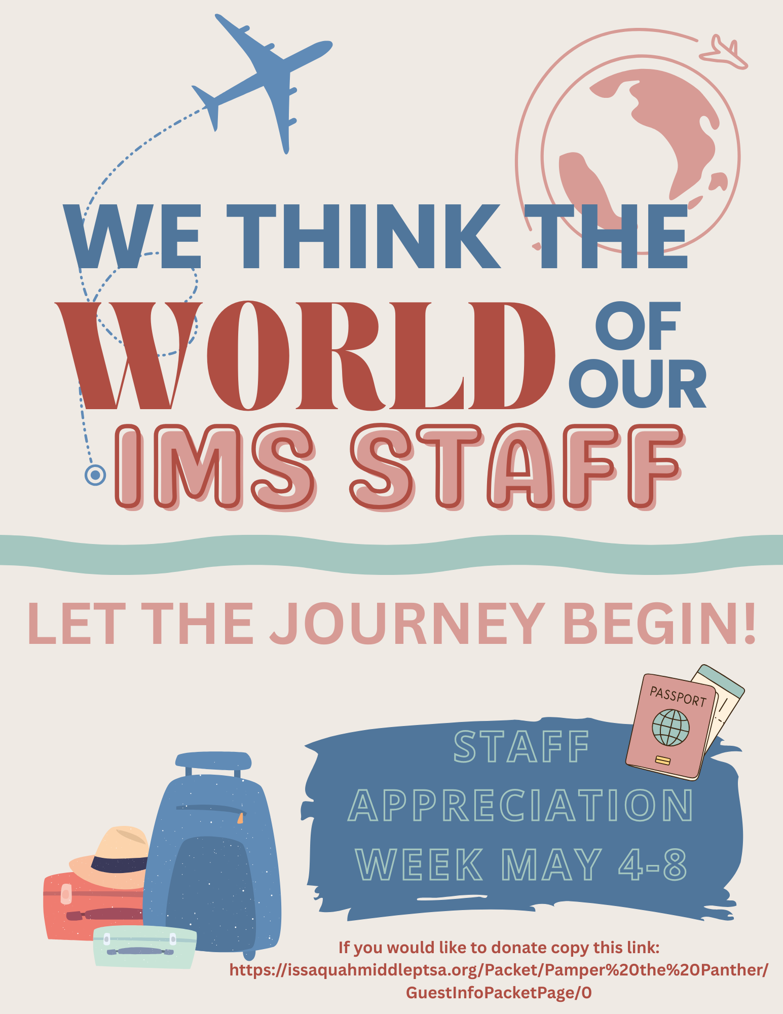 The next General Membership Meeting is Wednesday, April 22th at 6:00pm in the Issaquah Middle School Library. The PTSA will be holding our elections for the 2026-2027 Board of Directors for the PTSA.